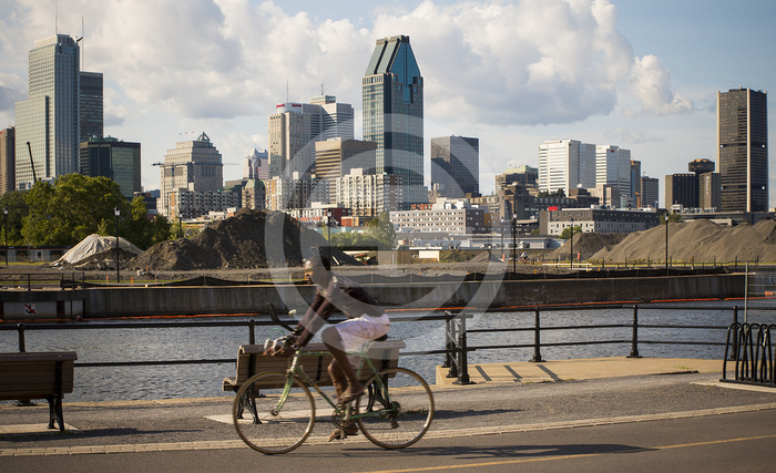 在潘特-圣-查尔斯的河畔自行车路径,连接旧港(Old Port)和拉欣(Lachine)运河的街区