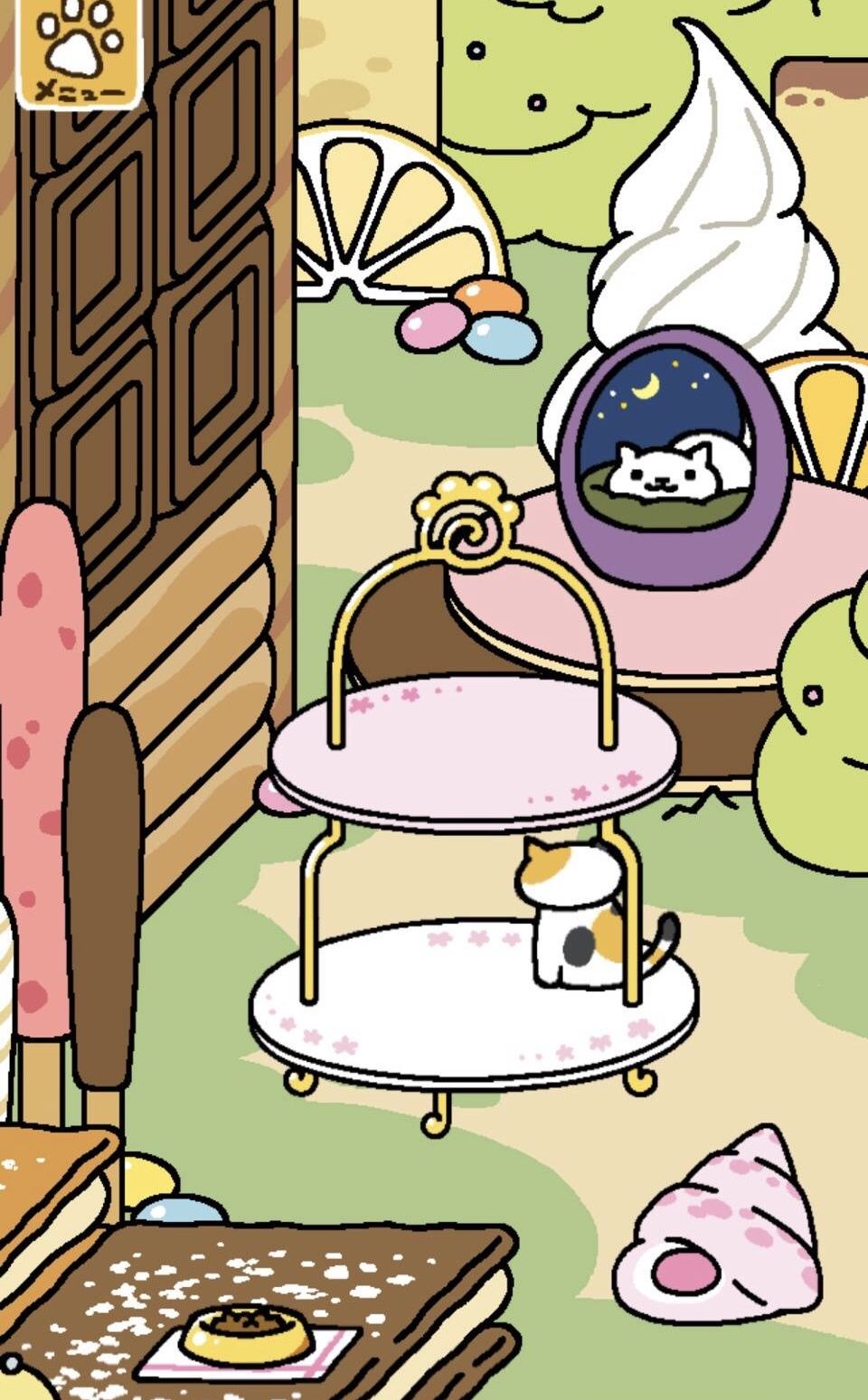 《猫咪后院》也是一款主打女性市场的手游,将“猫咪经济学”运用到了极致。游戏中猫咪温暖治愈的画风设计,庭院是如同世外桃源一样的猫咪之国,每只猫的性格属性与神态动作都不同,猫咪冷淡可爱但是怡然自得的“王样”神态满足了女性玩家“云撸猫”的梦想,在全球范围内获得了1900万的下载量,2017年4月Hit-Point联手电影公司推出了真人版电影《猫咪后院之家》在日本上映。
