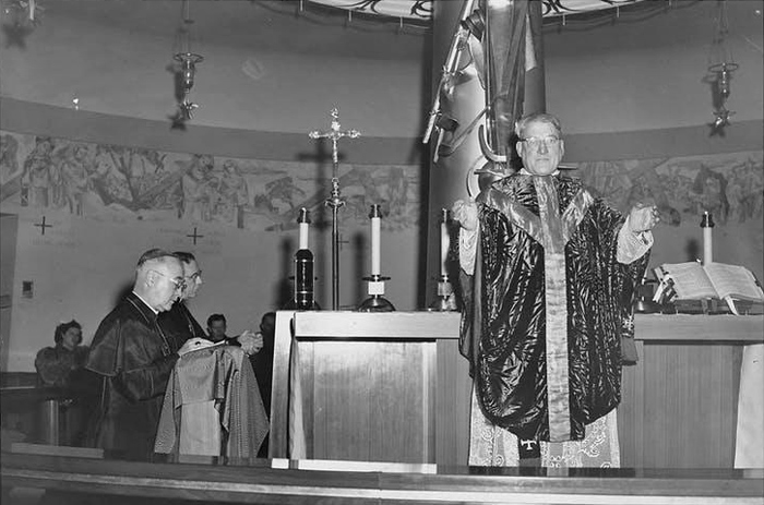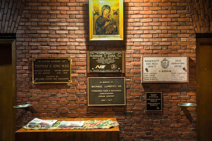 在美国,最早的机场礼拜堂建立于1950年代,是为员工而非乘客设立。1951年,波士顿大主教Richard J. Cushing在波士顿洛根机场(BOS)建立了美国首个机场礼拜堂,它只对于在机场工作的人们开放。教堂设有一个不大的霓虹灯指示牌,在献堂典礼上,Richard大主教亲临礼拜堂念了祝辞。不久之后,第二座礼拜堂在当时的纽约艾德威尔德国际机场、如今的肯尼迪机场建立。