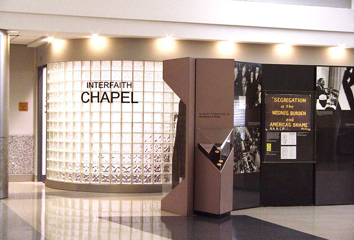 譬如,有的机场允许神职人员利用公共广播系统宣布宗教仪式的开始或结束,另一些机场则禁止这样的公告,譬如芝加哥奥黑尔机场的礼拜堂,不仅对于宗教集会有着严格的规定,甚至不允许机场牧师在礼拜堂周围摆放任何具有宗教含义或暗示的标志。