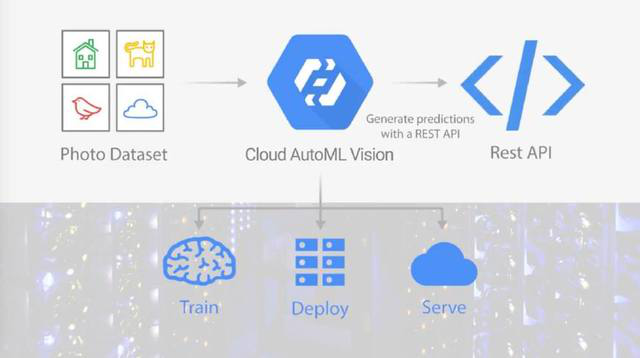 按照谷歌云AI项目首席科学家李飞飞的说法,AutoML的目标是降低开发者、研究者和企业群体使用人工智能相关工具和框架的门槛。而通俗的理解大概就是,这个产品可以不用写一行代码,就训练出一个企业级的机器学习模型。AutoML也就是“自动机器学习”的意思。