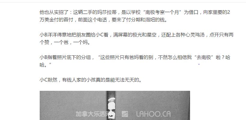 【加拿大乐活网lahoo.ca】最近网络流传出多起涉及留学生“偷钱”话题相关的新闻。从温哥华头条(Wechat ID:lahoobignews)报道的18岁女生转移父亲资金300万,到15岁留学生打赏网络主播65万,再到网络上疯传的《你在国外开着玛莎拉蒂,你老子在国内开滴滴》,几篇文章都同样指出了这样一个问题,那就是中国父母辛辛苦苦挣钱供孩子出国念书,为何孩子不知感恩还反而花钱不加节制,甚至偷父母的钱去滥用呢?