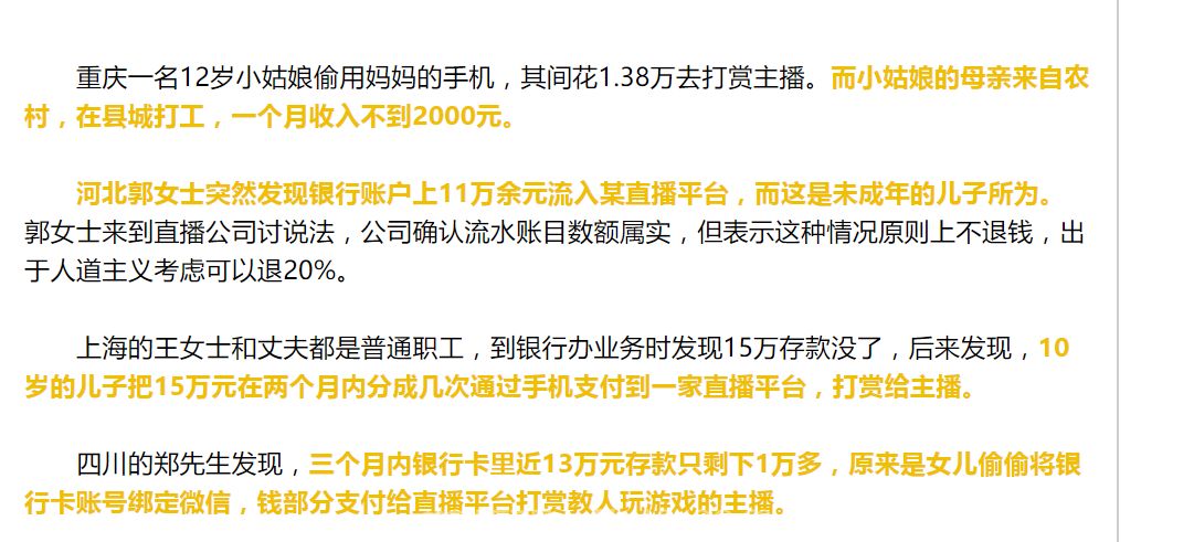 这种偷父母钱重金打赏网络主播的事情在国内也是屡见不鲜。