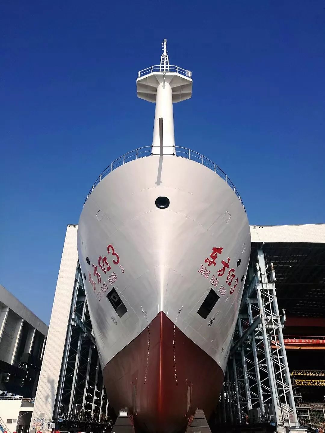 日前,新型深远海大型综合科学考察实习船“东方红3”号在江南造船(集团)有限责任公司下水。
