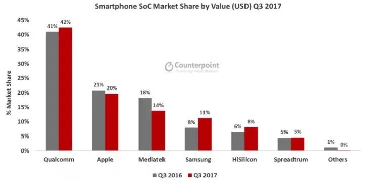 2017年Q3,高通市占率达42%