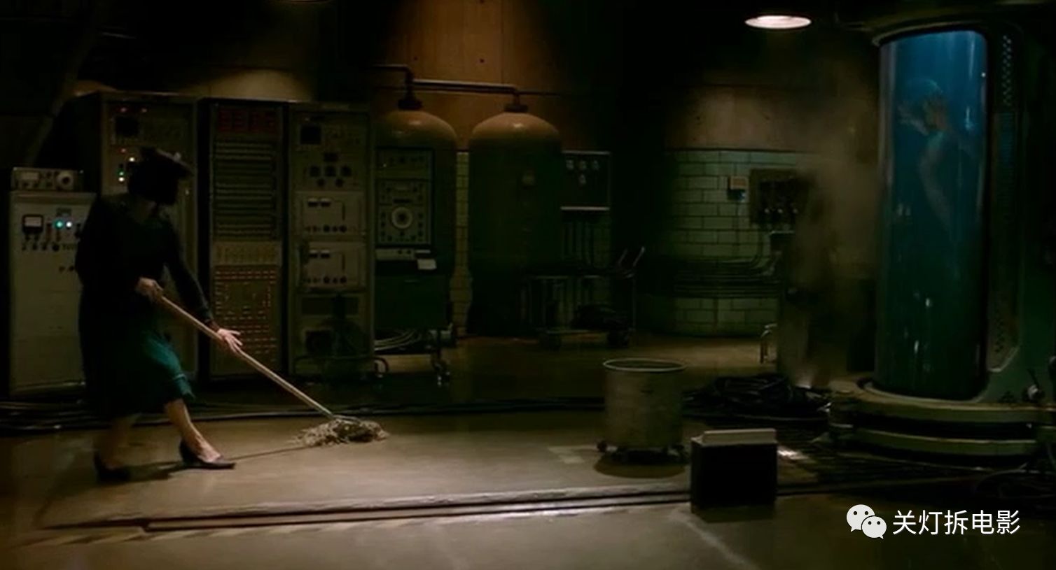 图中这两位都是这个实验室的女清洁工,一个哑女,一个黑人,都是上世纪60年代,影片故事发生年代社会的最底层。