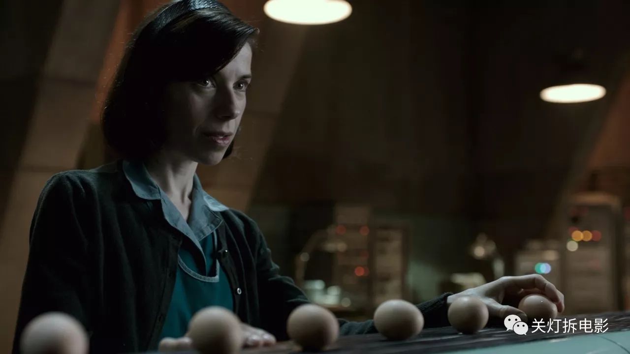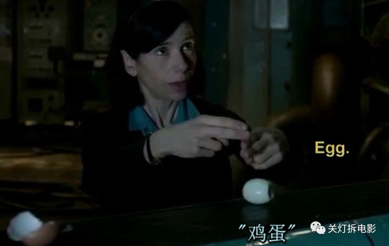 哑女与水怪最初的交流,建立在鸡蛋这一触媒上,在片中的隐喻就是性暗示。