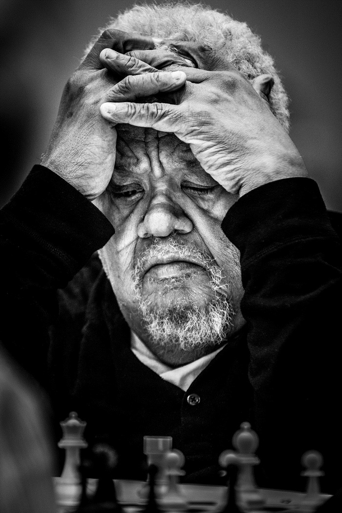 虽然对于普通观众来说,国际象棋可能没有那么刺激,但拉达通过棋手扭曲的面孔展现了比赛的紧张氛围。“只有真正下过棋的人才明白,国际象棋其实非常紧张,你得花五六个小时和对家‘战斗’,而且你还不能碰他,不能说话,甚至不怎么能动……这些被压抑的紧张情绪周围人都能观察得到,我相信也能被相机捕捉到。”