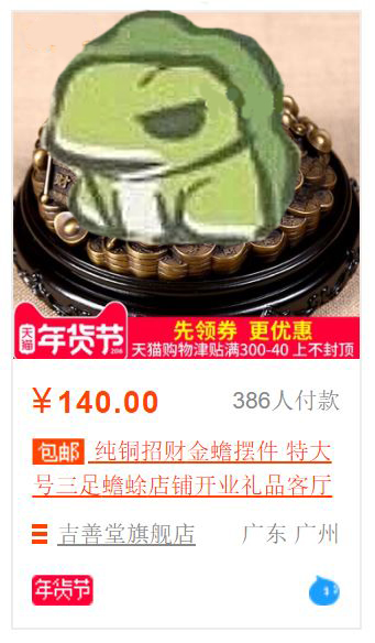 要是碰上无良淘宝商家,蛙蛙马上变成了招财蟾蜍摆件。▼