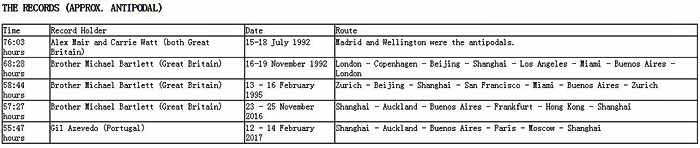这是一个航空业高度发达的时代,每天大概有十多万架商业航班从空中飞过,但想在尽可能短的时间内乘坐它们绕地球一圈,也并不是一件容易的事:这需要从全球无数个机场以及彼此通航的航线中,选择在目前的季节和计划的时段内准点率较高的航班,同时还要确保各段航程的航班前后尽可能地紧凑衔接,但又不会令中转时间过分紧张。