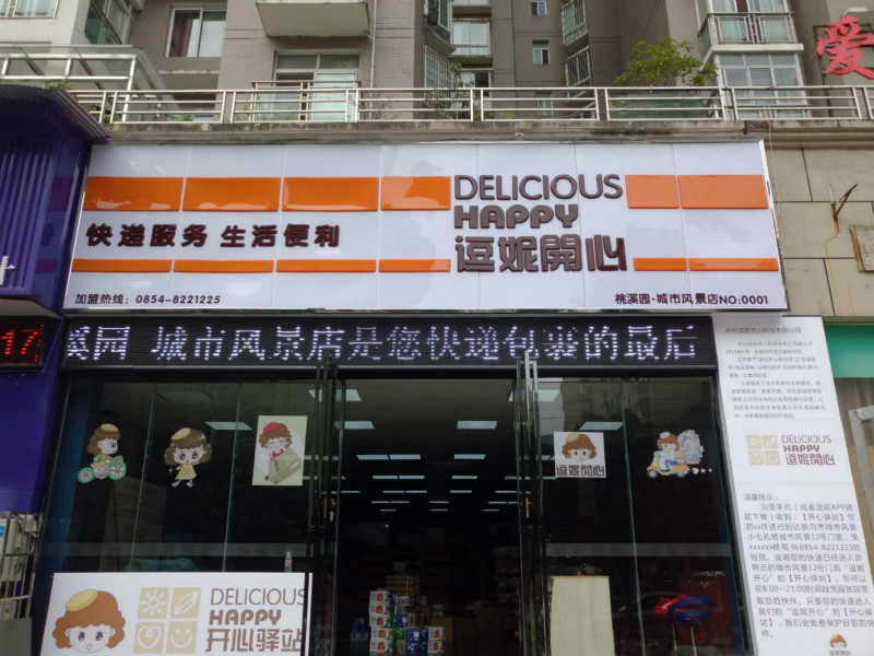 逗妮开心有两种模式,一是和小区里的夫妻老婆店合作,二是联合各地快递公司组成利益共同体,重点在社区、校园设立便利店,每家便利店有15平方左右面积专业快递区供放快递,快递公司每天把顾客的快递放入便利店中,营业员通过逗妮开心末端快递管理系统进行入库、出库、统计等管理,系统通过短信、公众号、APP通知顾客。
