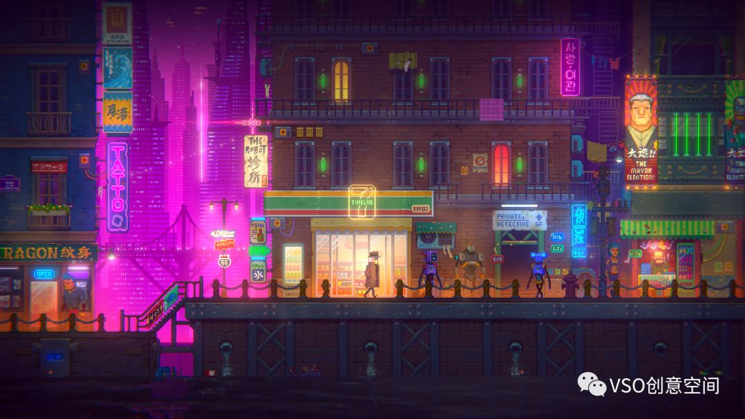 跌宕起伏的故事情节,精巧的谜题以及便捷的操作都是入坑《迷雾侦探》的理由,而同样让人惊艳的,还有这款游戏的美术设计——将赛博朋克与像素绘风完美结合,复古与近未来的奇妙碰撞,打造出一个让人难忘的迷幻世界。