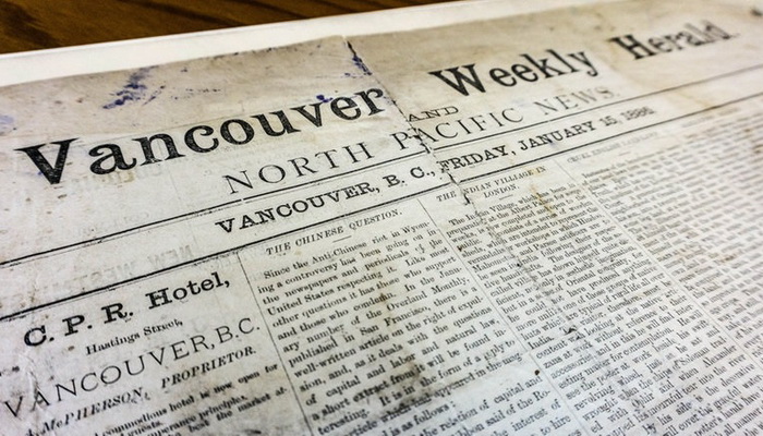 最近,不列颠哥伦比亚大学收购了一份英文报纸,名为《温哥华每周先驱和北太平洋新闻报》(Vancouver Weekly Herald and North Pacific News,以下简称《每周先驱报》)。该报出版始于1886年初,比温哥华市成立还早三个月,可以说是温哥华的“新闻鼻祖”之一。