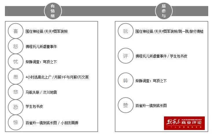 通过众多事件、产品、游戏的刷屏特点,总结核心有两点:有情绪、易参与。