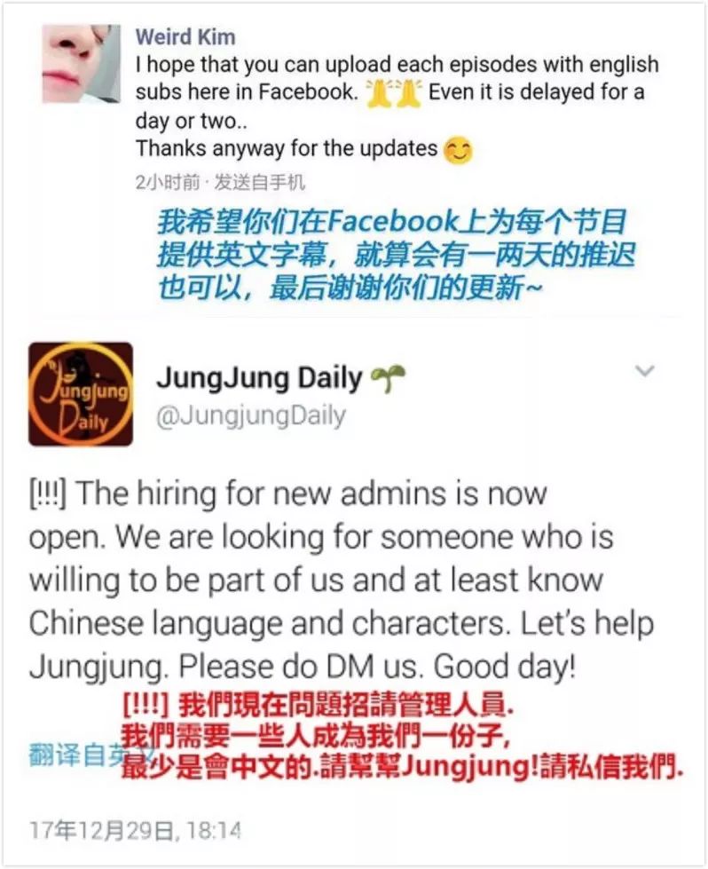 跪求英文字幕的海外粉丝也不在少数,有这种需求,字幕组的产生指日可待。说不定继武侠小说之后,偶像选秀节目也能搞一搞文化输出呢。