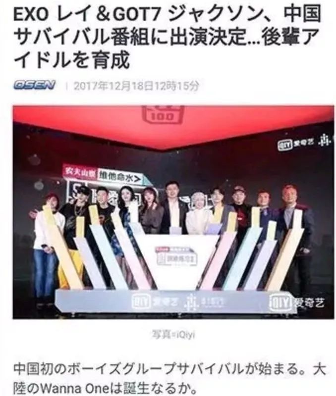 日媒也以EXO的张艺兴和GOT7的王嘉尔为重点,报道了《偶像练习生》的相关情报: