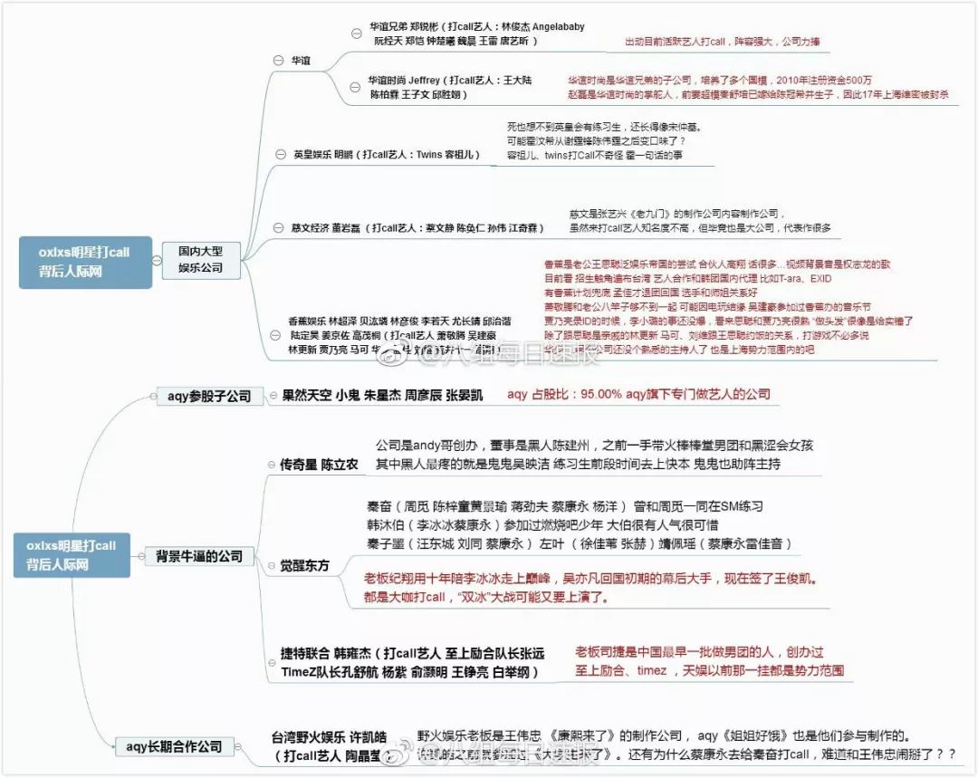 有网友挖出这些打call“背后的故事”,虽然不具备官方盖章,还是可以看出背后复杂的关系网和显而易见的资源。