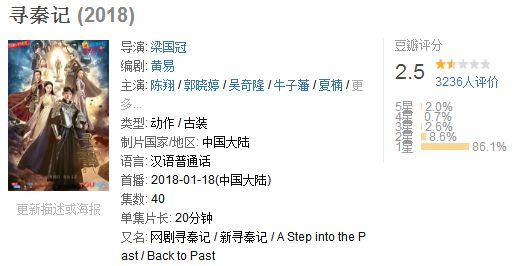 而根据豆瓣最新的评分,新版《寻秦记》目前的评分为:2.5分!