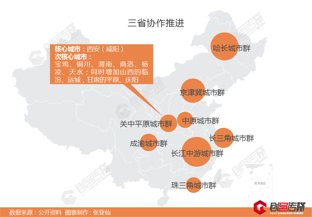 国家发改委国土开发与地区经济研究所原所长、中国区域经济学会副会长肖金成介绍,全国新型城镇化规划发布以来,国务院批复的城市群规划有长江中游城市群、成渝城市群、哈长城市群、长三角城市群、中原城市群、关中平原城市群等6个城市群,加上2008年批复的珠三角城市群,目前已批复7个城市群。这次批复的关中平原城市群,与相邻的以郑州为核心的中原城市群相比,范围要小得多,城市数量也少得多。中原城市群涵盖河南、山西、河北、山东、安徽五省30座地级市,国土面积28.7万平方公里,总人口1.58亿人,GDP5.56万亿元,生产总值仅次于长三角、珠三角、京津冀,位居全国第四位。