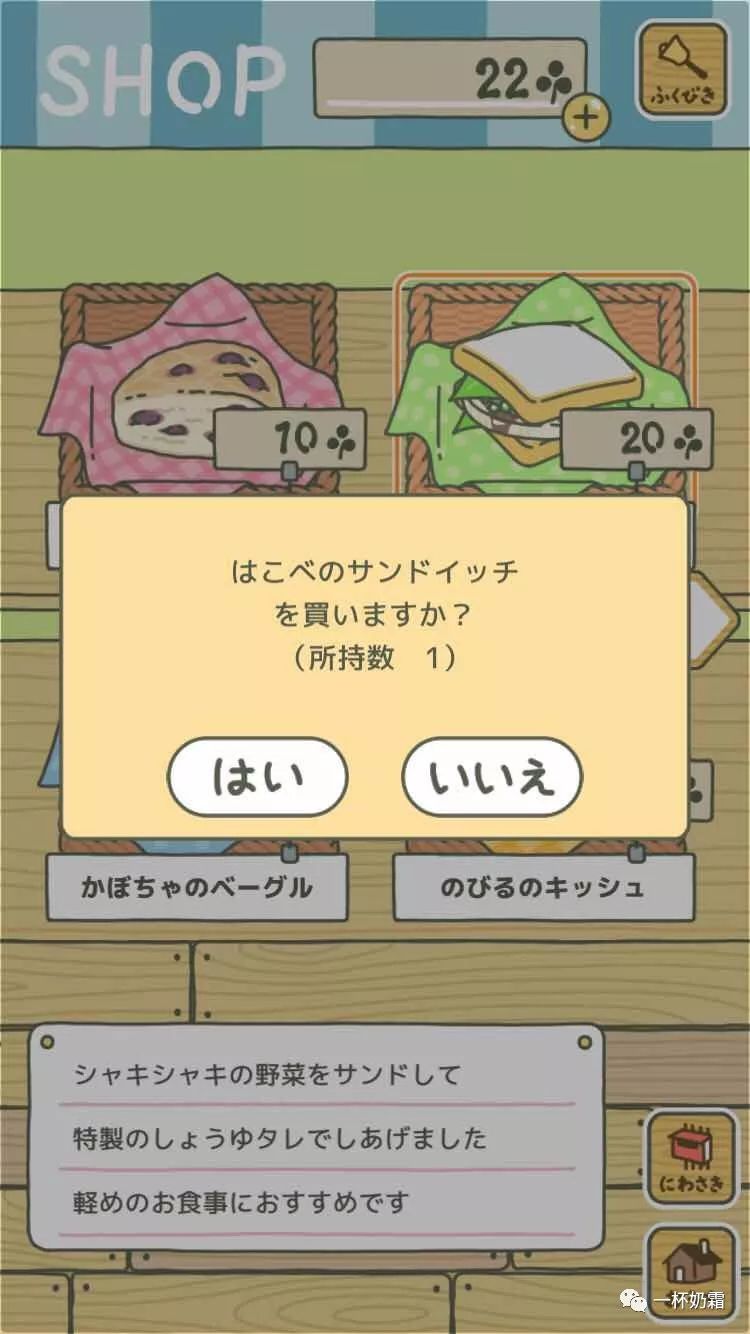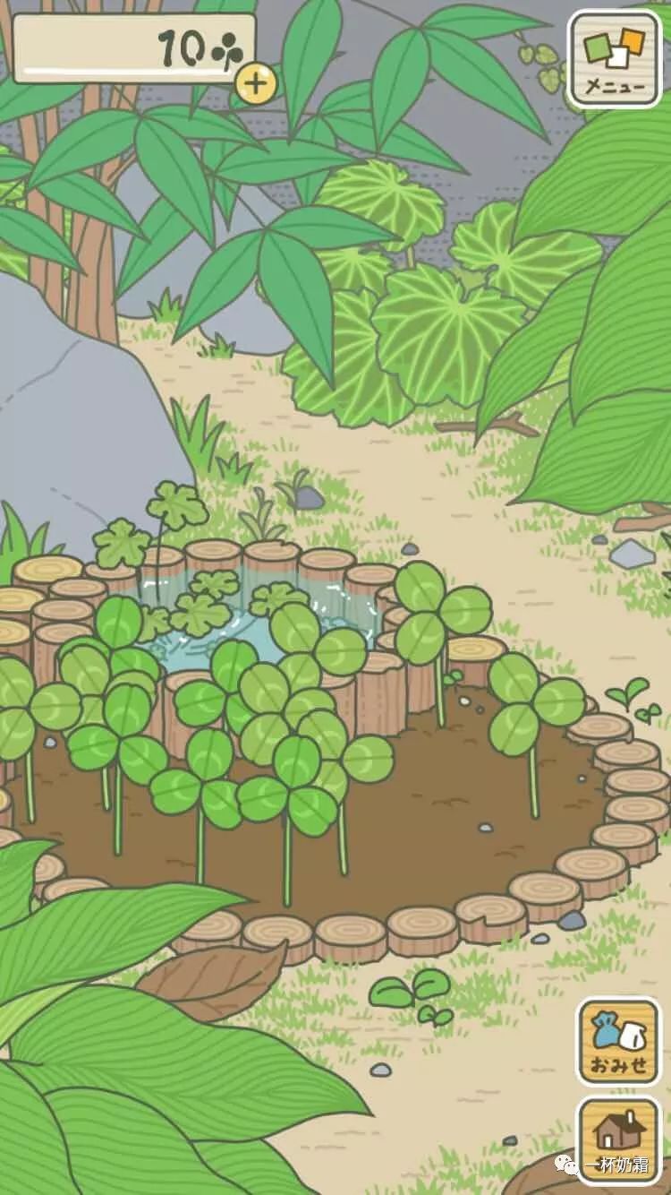游戏里你能做的,只有收割门前的三叶草,然后去商店换东西,给蛙蛙准备旅行途中的食物,装备,幸运挂件。