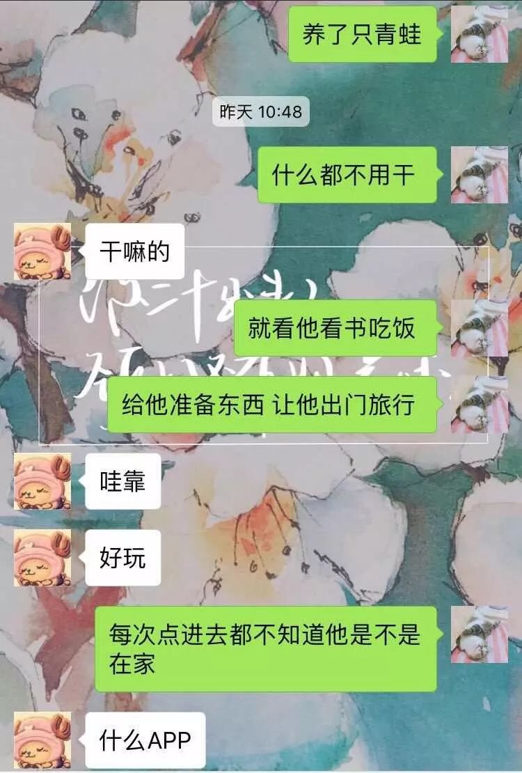 我下载了一天后,跟我的朋友说,我养了只青蛙。