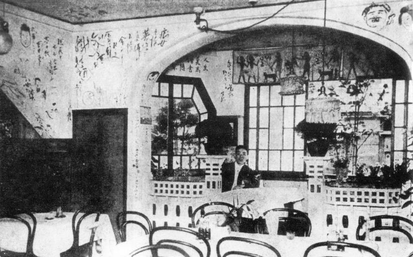 这之后,一家名为Café Printemps的咖啡馆在银座开店。这里除了一楼的空间,交50钱的会员费,即可使用二楼的会员专用空间,在那里你将有机会结识作家森鸥外、作家谷崎润一郎、画家黑田清辉、歌舞伎表演家市川左团次等文化名人。这些常客在店内随手涂鸦的漫画小像和诗句成了这家咖啡馆的标志。这家咖啡馆也出现在了作家常客永井荷风的作品《断肠亭日乘》中。