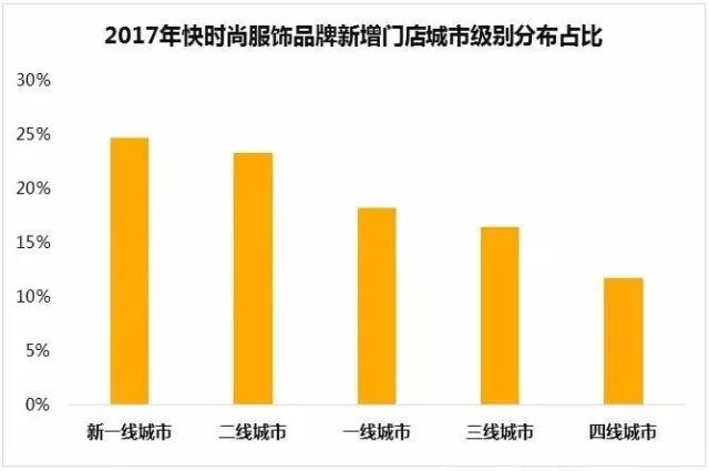 从城市等级分布来看,得益于新增供应的持续放量,新一线、二线城市对快时尚品牌的吸引力超过一线城市;三四线城市“人口红利”显著,且商业地产具有较大的可操作空间,对快时尚的吸引力逐渐增强。