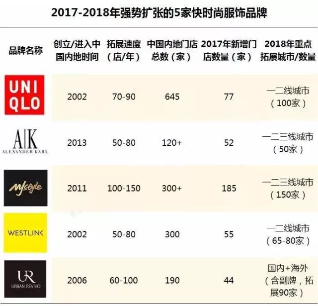 从2017年快时尚服饰品牌们的拓展选址情况和调整举措,以及2018年最新发展策略可以看出,目前快时尚行业整体呈现以下发展特性: