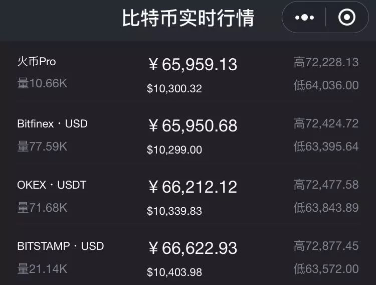 截至本周二晚18点,比特币现货最新成交价10300.32美元,