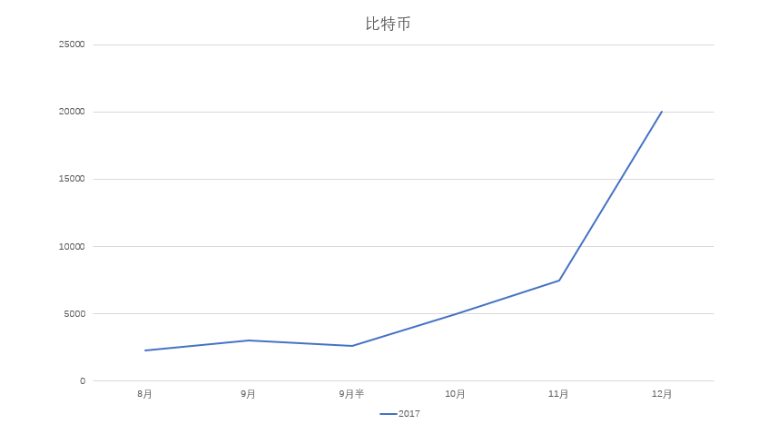 随后一路狂涨,在2017年12月一举突破20000美金/枚,达到历史最高值。随后又陆续下跌至如今10000美金/枚的水平。