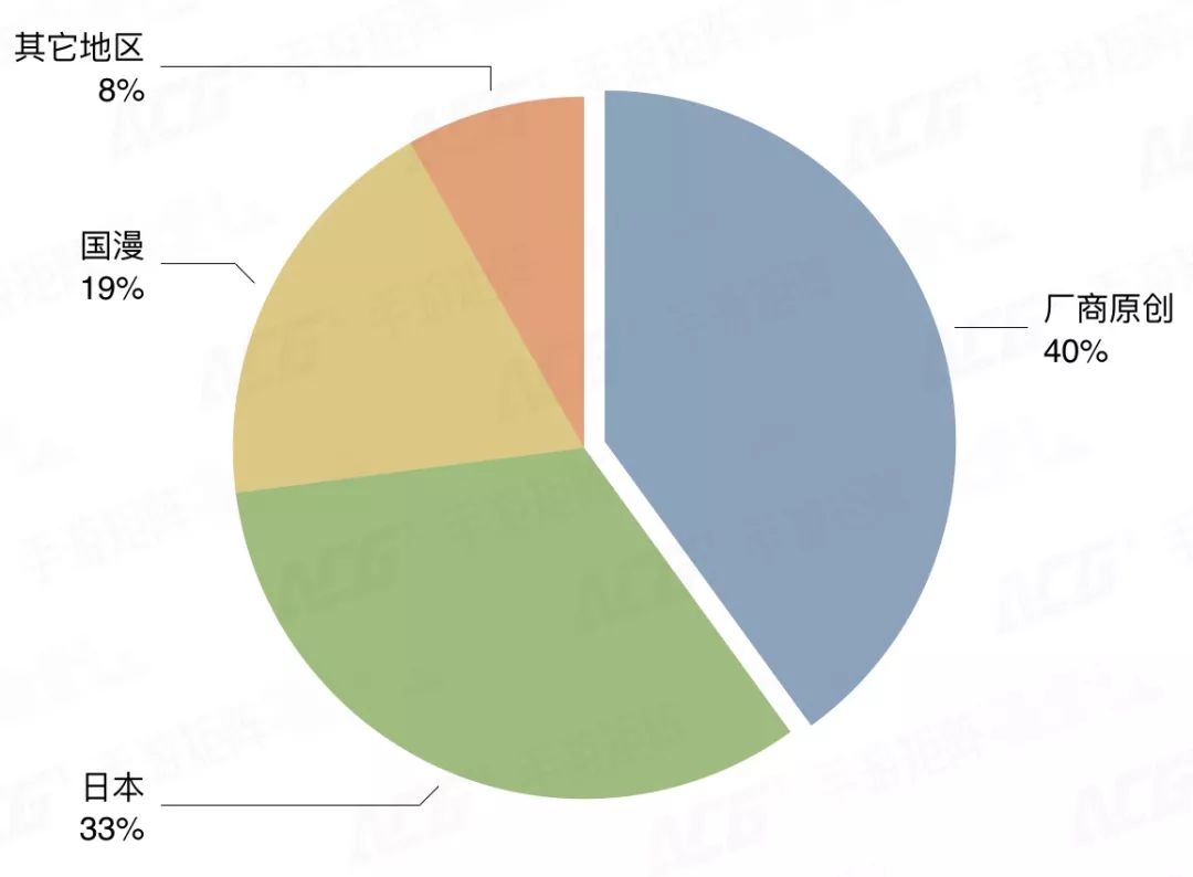 从上面两个图中我们可以很容易看出,游戏厂商自己完全原创,以及使用来自日本的ACG类IP,仍然是整个二次元手游市场的主流。