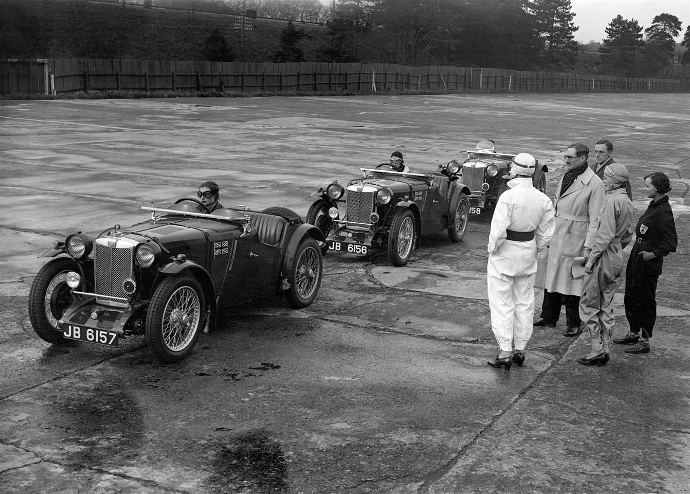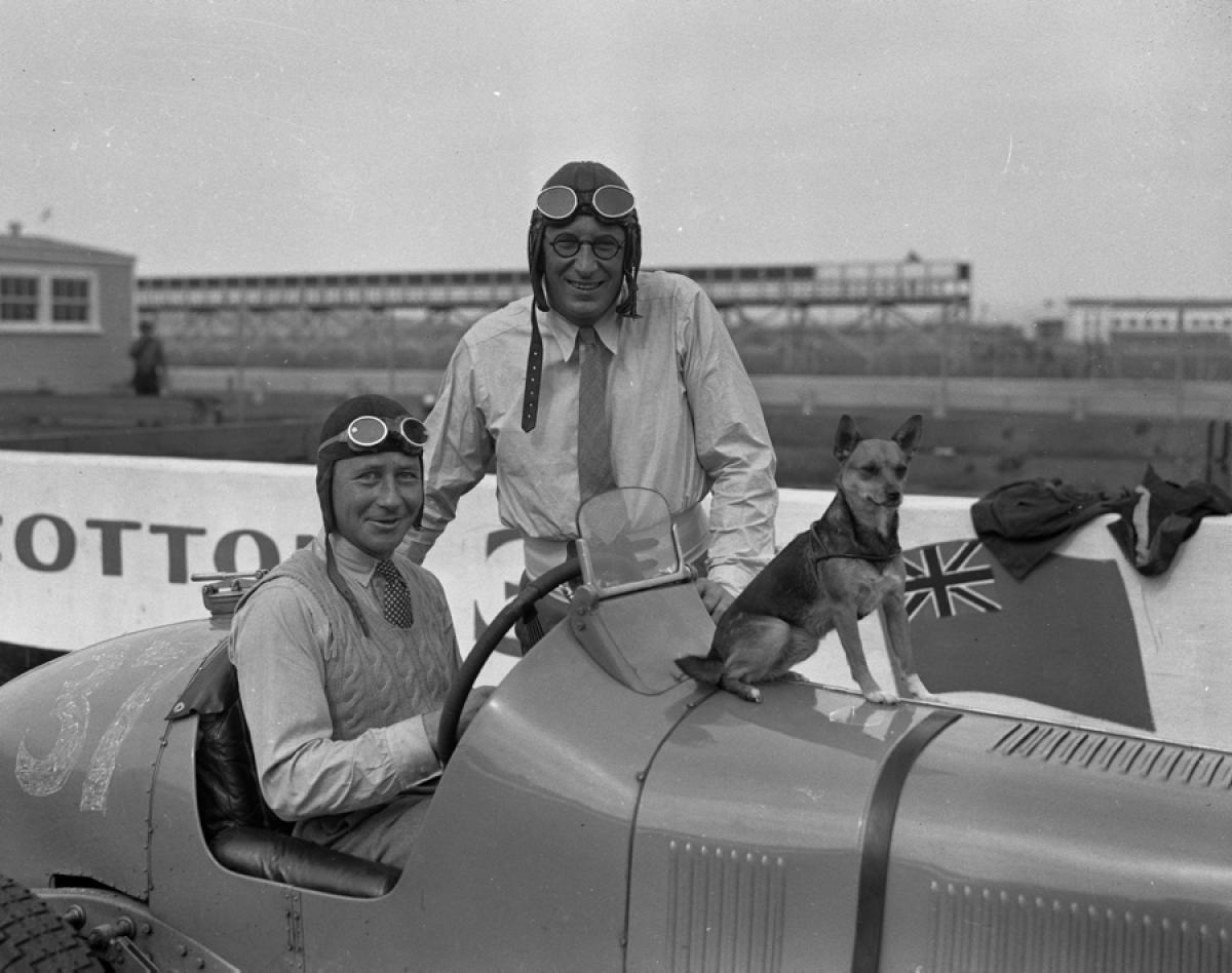 1936年,某次赛车比赛中的两位车手和一只宠物狗