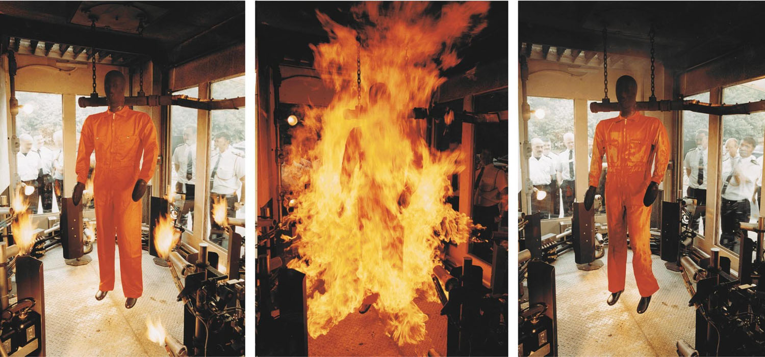 杜邦公司正在进行Nomex防火服的阻燃效果测试
