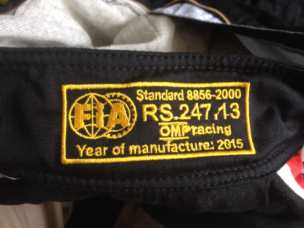 缝在赛车服上的FIA认证标识,印有8856-2000认证标准和生产年份