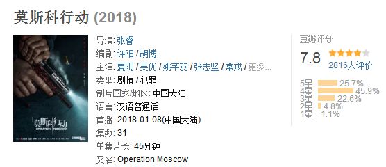 《莫斯科行动》这部剧很难说非常优秀,但起码它在影视行业普遍注水而又如此浮躁的今天让你感觉到了热血与正义。