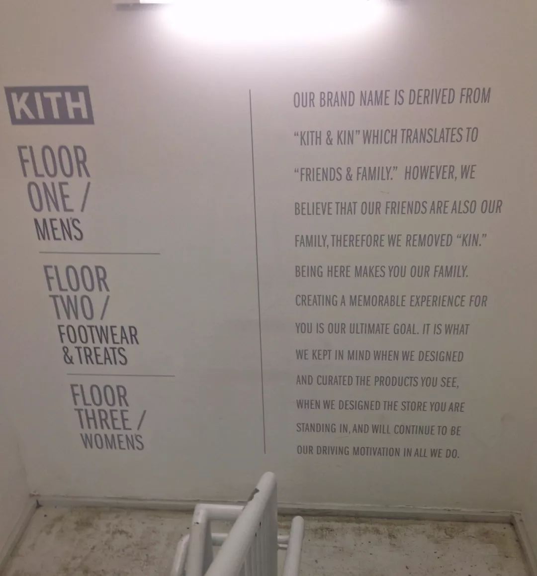 楼梯转角墙上解释了Kith一词的来源,意思是“朋友”
