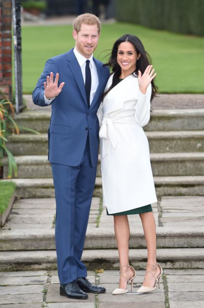 订婚照时梅根穿的白色浴袍式大衣(wrap coat)来自加拿大品牌Line the Label。