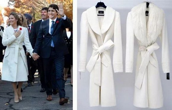 加拿大网红总理的太太Sophie Grégoire有5件它家的大衣。这件白大衣现在还有货,真的好美啊~我喜欢胸口一圈毛毛。