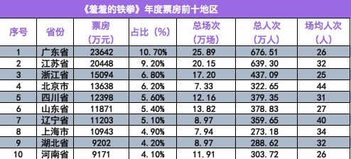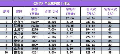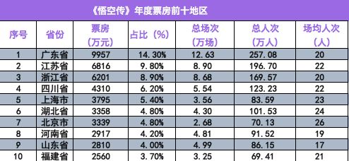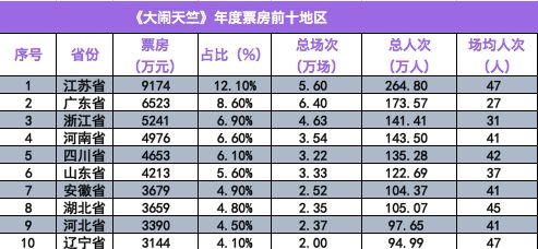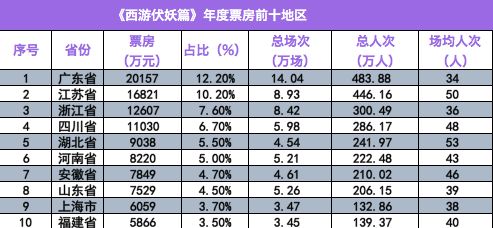 年度票房前十地区表