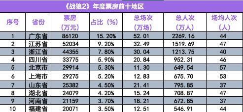 单片票房产出方面,粤苏浙三地的“王者地位”亦难撼动。年度国产片十强中,除《芳华》外,三地包揽其余九部影片的地区票房三甲席位。广东、江苏、浙江已坐稳中国三大票仓。