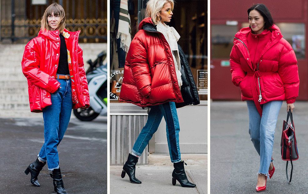 这种相对来说又比较放松的场合,加上必须的保暖,再结合今年的流行单品,大火的红色廓型羽绒服hin值得选。而遵循“松紧配”的原则,下身自然要穿地贴身一些。