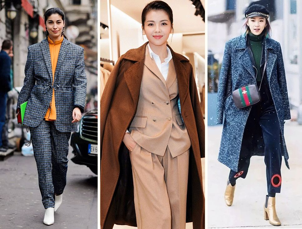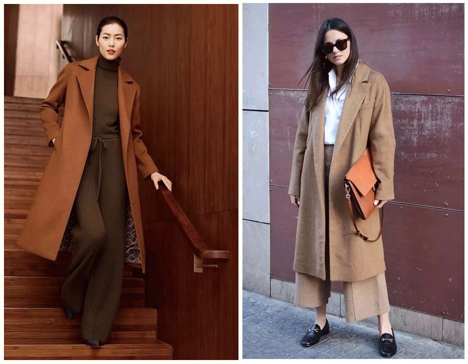 ▍推荐搭配look:大衣+阔腿裤/膝盖以下裙装