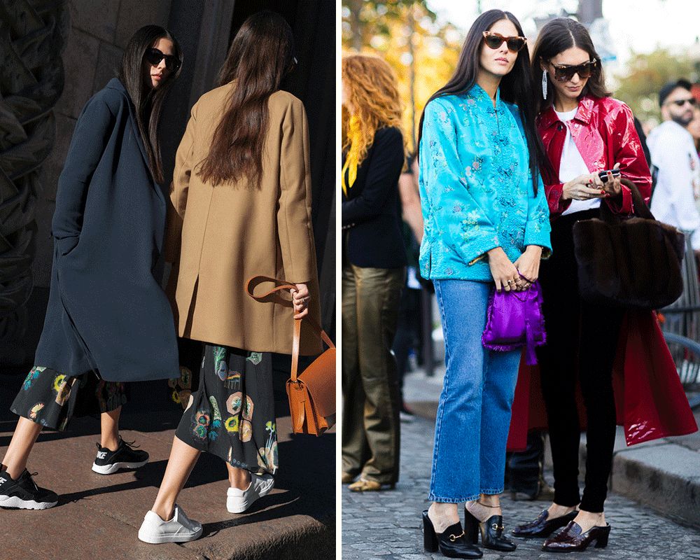 当风格相似时,穿上同样套路的衣服或者颜色呼应撞色的look就足够抓眼球表心意了,比如Diletta Bonaiuti和Gilda Ambrosio同样的连衣裙搭配大衣。