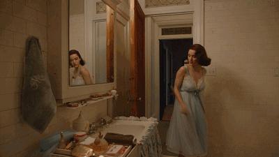 在电视剧里,女主角麦瑟尔女士一共出现过三个睡衣LOOK。第一套就是第一集展现她“完美主妇”的家庭生活时,这套粉蓝色的睡衣套装。有些人以为下面这是两件,其实它们应该是同一套睡衣——在薄纱外套下还有一件衬托出美好胸型的长睡裙,穿上外套是端庄贵妇,脱下来就变身性感娇妻,可以说是居家旅行上台表演必备良品了。