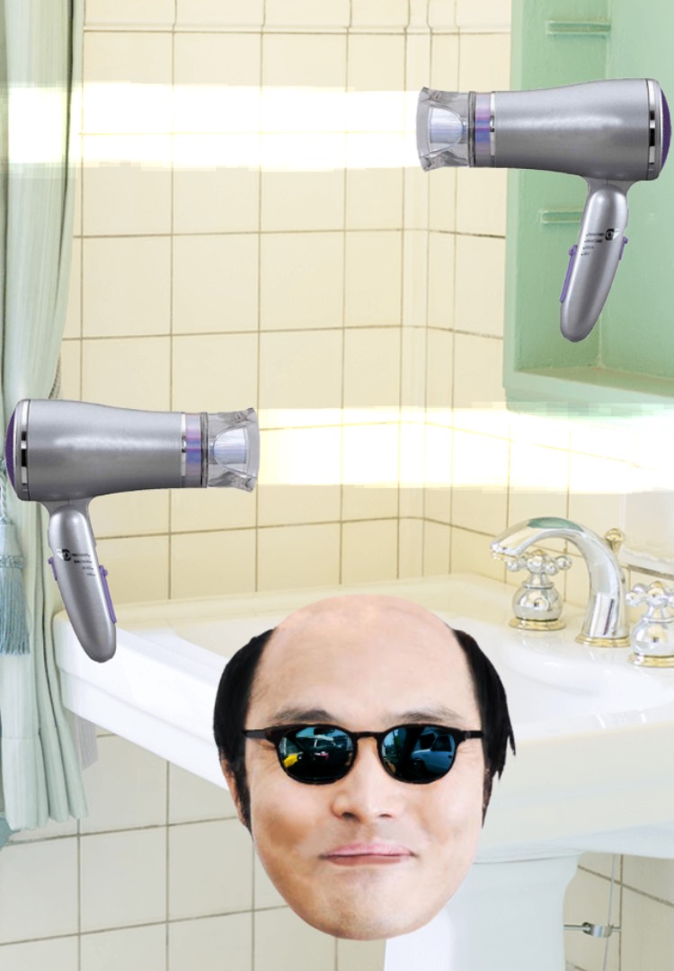 只能尽量骚气地让假发在空空如也的头顶旋转、跳跃、蠕动……