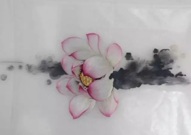 大师出品,一下手便不同凡响。平顺光亮、针脚整齐、施针严谨、掺色柔和、车拧自如、劲气生动、虚实得体,叫人分不清到底是绣还是画。