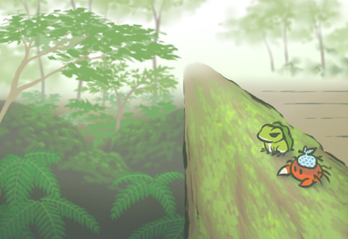 奥入濑溪流位于日本青森县,在十和田湖附近,均为青森县的特别名胜和天然纪念物。青蛙出现的这张图片则是横跨溪流的一处木桥。这条全长约14公里的溪流,两岸散布着由扁柏、山毛榉、枫树等树木组成的森林,阳光照射减少加之临水环境形成阴凉潮湿的气候,也就不难想象为何木桥的扶栏上会遍布苔藓。