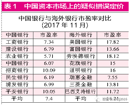 按照这个逻辑,我们就来看一下,当前的A股市场有没有犯下新的错误?表1是中国银行股与海外银行股的市盈率对比。