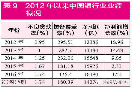2018年中国经济走向的主要观点包括两派,一派认为中国经济已经复苏,正在重新向上;另一派认为中国经济只是探底成功,未来将进入长期的L形底部。两个观点中已经完全将中国经济大崩溃排除在外,换句话说,目前即便对中国经济最悲观的预期,也只是认为经济会在底部长期盘整。无论是从客观数据,还是市场认知都已经没有大崩溃的情况了!事实上,银行业本身的经营也是很稳定的,表9是中国银行业的经营数据。银行业的数据清晰地表明,银行业已经见底,正在缓慢地复苏。事实上,中国宏观经济数据显示已经见底,并且开始复苏。在基本面层面,中国宏观经济和中国银行都没有大的问题,只是常规小的波动,而且在政府统一协调下已经有效的化解,并走出了最困难的时刻。