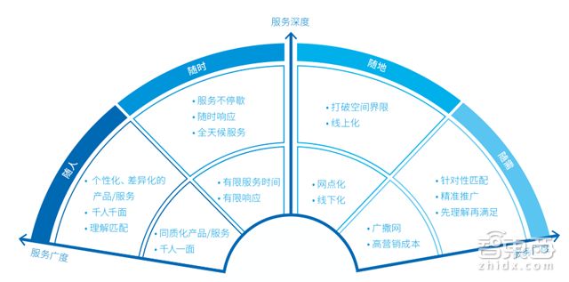 由上可知,智能金融将重塑产业链、供应链和价值链,拓宽金融服务的边界,推动金融服务朝着“随人”、“随需”、“随时”、“随地”的标准不断进步。